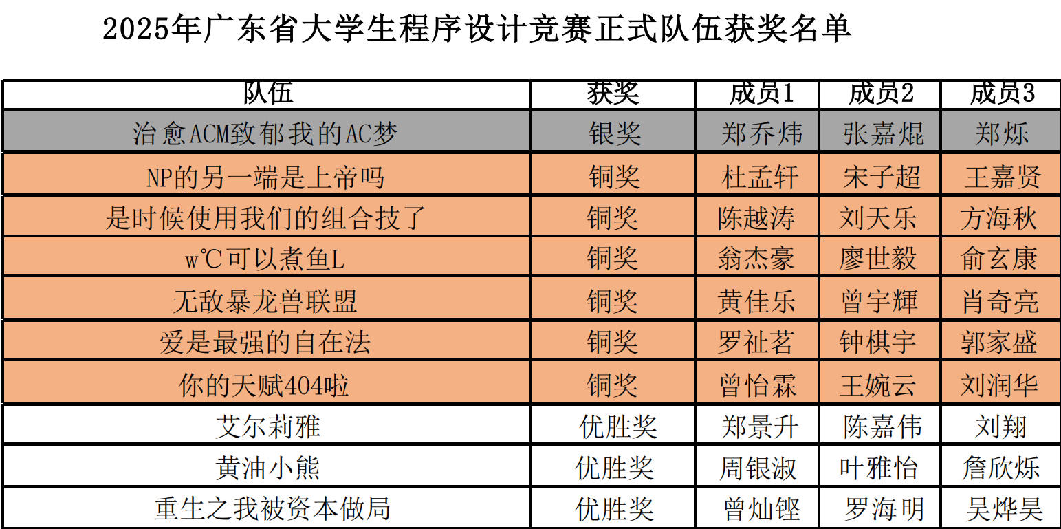 我校学子在2025年广东省大学生程序设计竞赛中再创佳绩